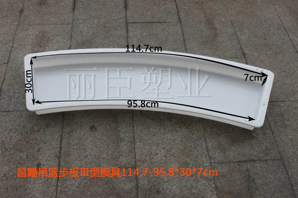 水泥吊籃步板塑料模具主要用于預制高鐵橋墩吊籃上的檢查步板,此款模具系列為昌贛高鐵線路專用,共分為I、II、III、IV四個型號,由直行吊籃步板塑料模具及彎道圓弧吊籃步板塑料模具組成,其中I型為直行樣式,II、III、IV為圓弧樣式。