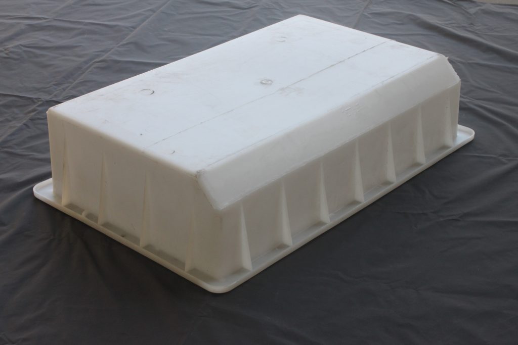 其中,水泥馬路牙子模具采用高韌性的聚丙烯塑料注塑加工而來,鑒于水泥澆筑對于模具承重的不同,在馬路牙子模具四周分別布置粗細不一的加強筋結構。整體呈倒角防撞型設計,有效避免水泥馬路牙子由于直接鋒利結構滑坡汽車輪胎等不利安全的因素。