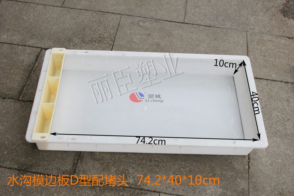 從多年的實踐數據表明,完善的灌溉事業歷來都取決于有效的排水工程,只有灌溉而沒有排水就會導致土壤漬水,及時原來的下水位埋的較深,但也會發生土壤漬水問題,這款水溝模具采用上寬下窄的樣式進行設計,由多個水溝模模具組裝而成,模具的尺寸上可以按照實際用地來進行更改,專門設計了一款配合水溝模堵頭來改變模具的尺寸不符問題。