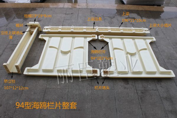 這款94型海鷗橋梁欄桿塑料模具在設(shè)計上與72型工字型橋護欄上略有些區(qū)別: