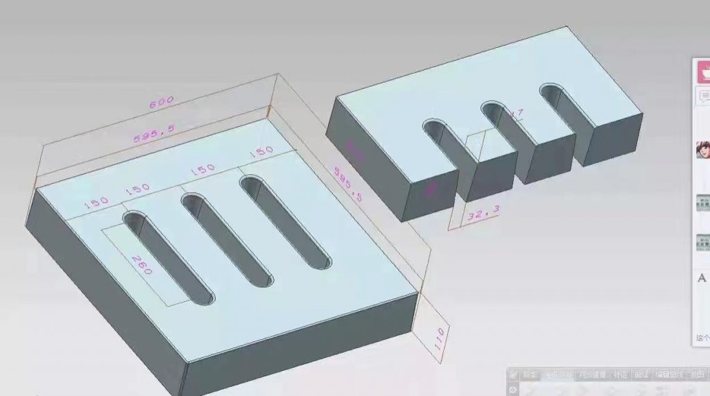 三孔雨水蓖塑料模具,模具采用米白色PP材質(zhì)制成,模具尺寸為60cm*60cm*11cm,模具開始設(shè)計(jì)尺寸為60cm*60cm*10cn,因?yàn)樾枰浞诌_(dá)標(biāo),所以模具厚度尺寸實(shí)際尺寸比設(shè)計(jì)尺寸厚1cm,模具采用三孔設(shè)計(jì),具體尺寸如下設(shè)計(jì)圖。主要用于道路下水使用,且厚度厚,可以承載較大的壓力。
