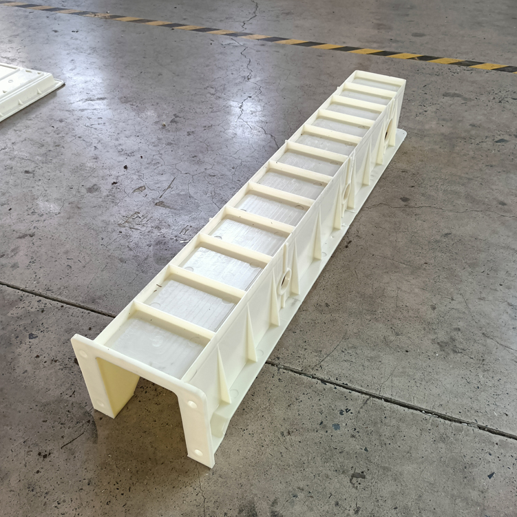 高鐵路基橋梁周圍、三孔立柱塑料模具,模具主體設(shè)有圓孔,預(yù)制時(shí)搭配塑料圓管使用,預(yù)制成型后用圓形鋼管連接使用,一般用在橋梁周圍做防護(hù)使用。